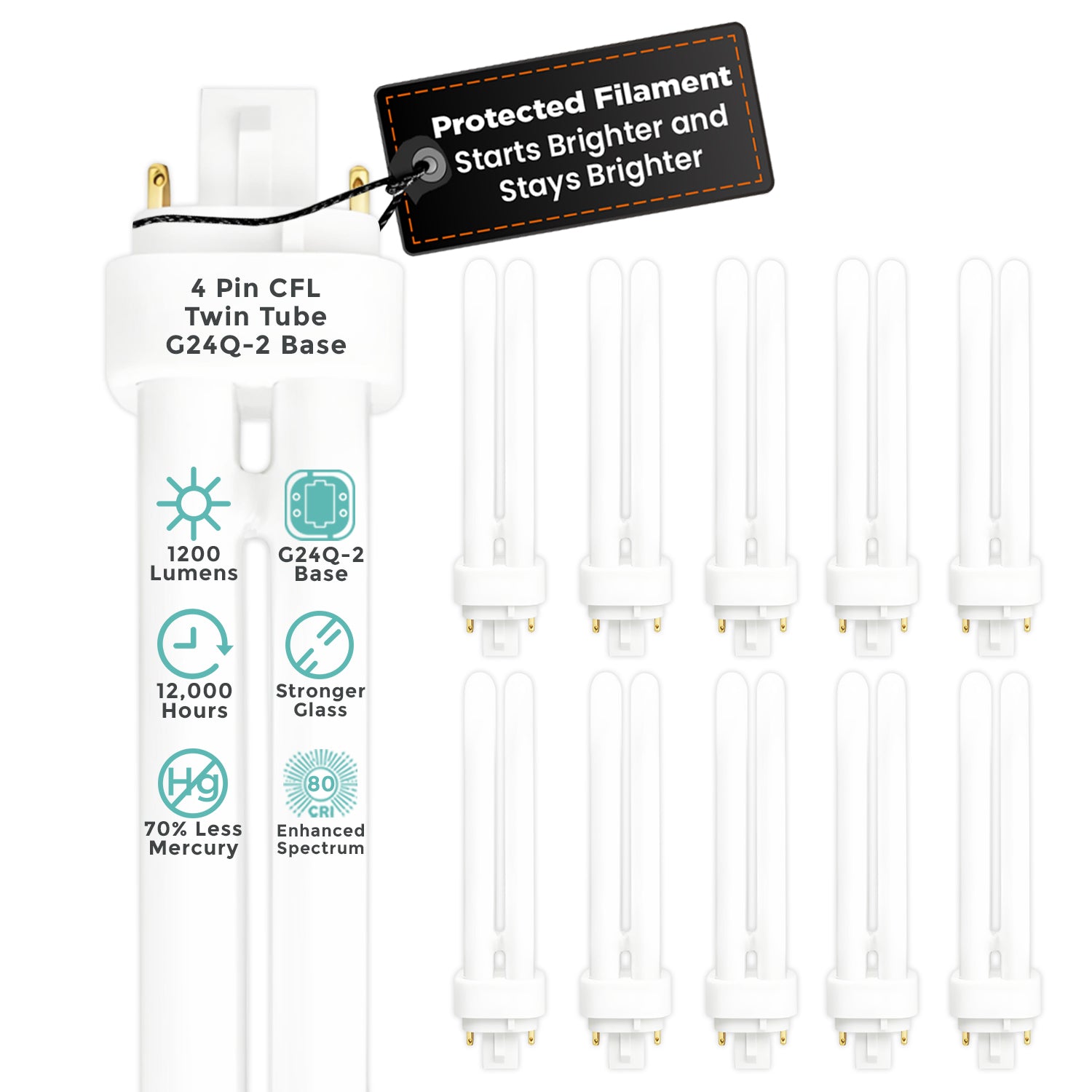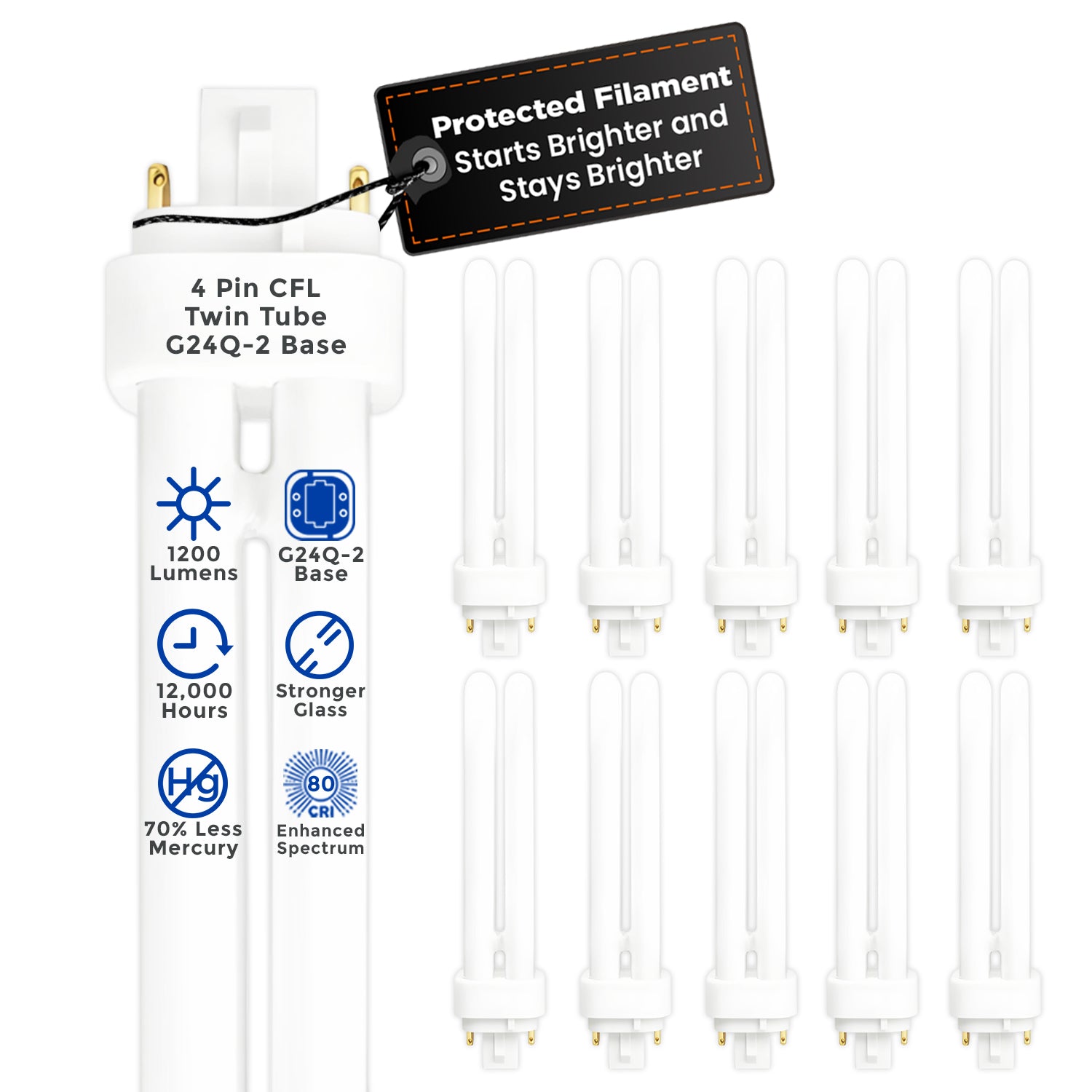 CF18W/850/DT/4P - G24Q-2 Base 18 Watt - 1200 Lumens Twin Tube 4 Pin CFL