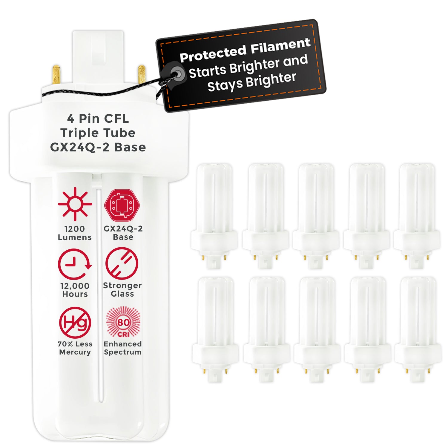 18 Watt CFL Light Bulbs - 4 Pin GX24Q-2 Base - 3500K Neutral White - 18W 1200 Lumens - Triple Tube Compact Fluorescent Light Bulbs Plug-in
