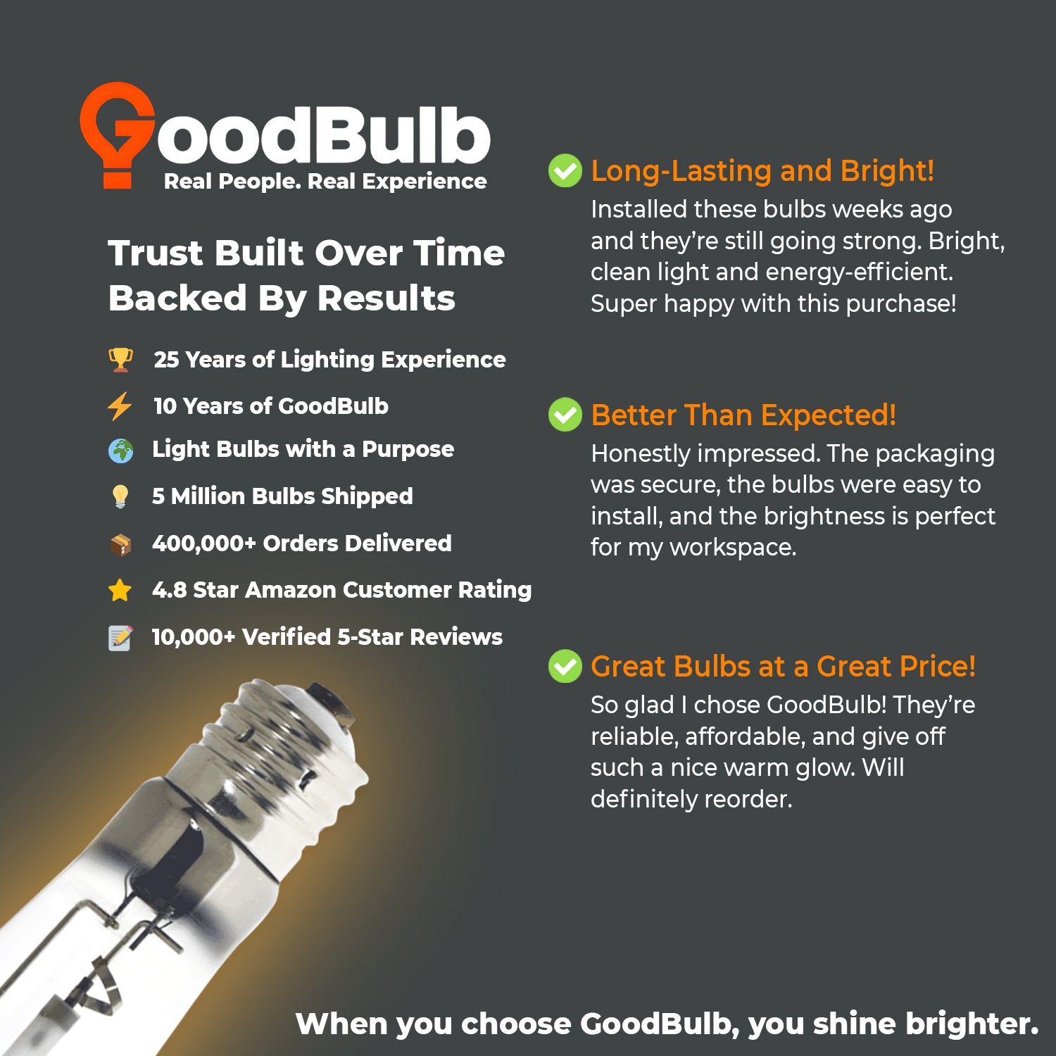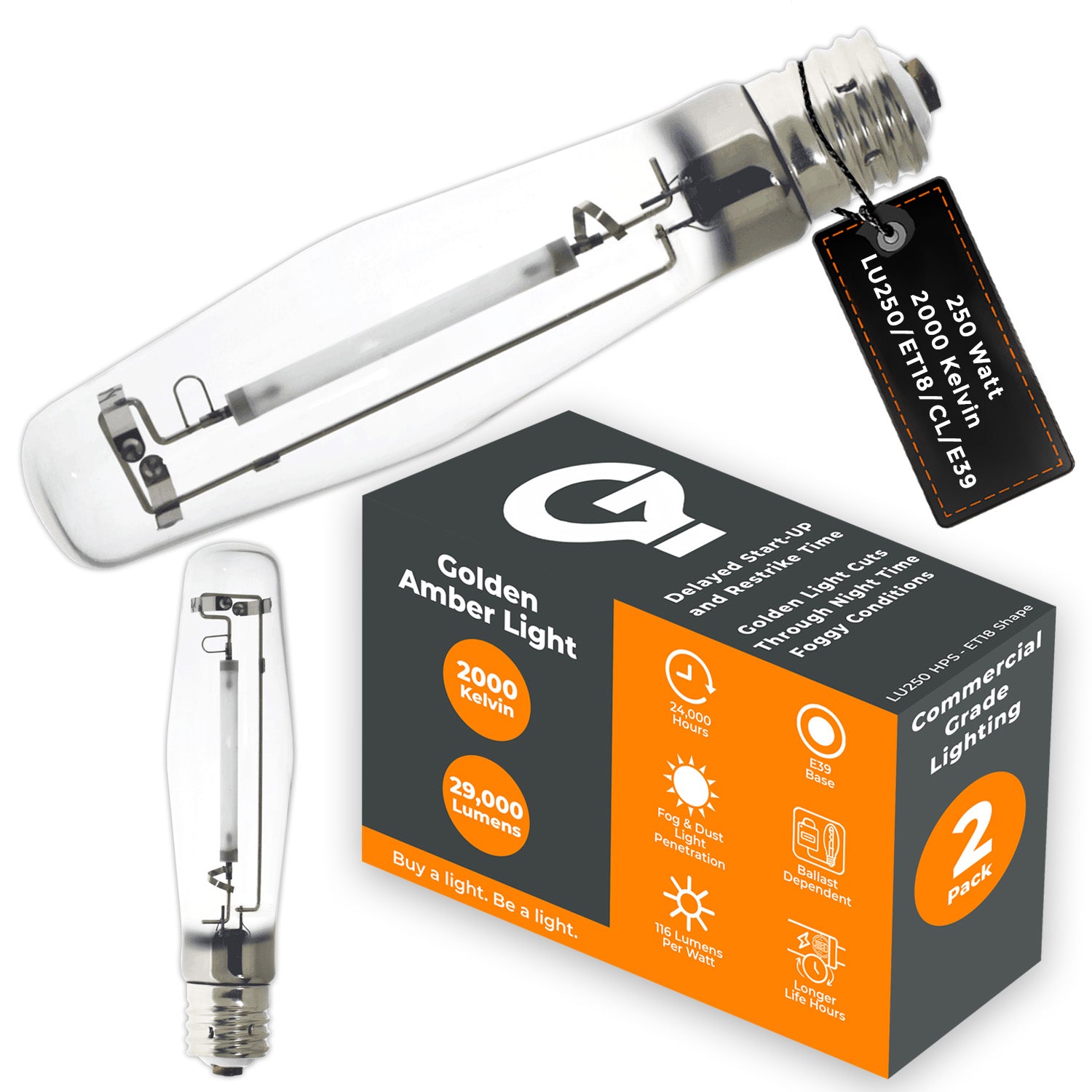 Engineered for powerful performance in demanding applications, this 250-Watt High Pressure Sodium (HPS) HID bulb delivers an intense 29,000 lumens of warm, yellow-toned light at 2000 Kelvin, providing unmatched visibility for industrial, commercial, security, and municipal street lighting. Featuring a clear ED18 glass envelope and a durable E39 mogul screw base, itās designed for high-efficiency illumination in fixtures that require robust, large-format lamps. With a 24,000-hour rated life, this bulb ensures consistent, cost-effective lighting for years.