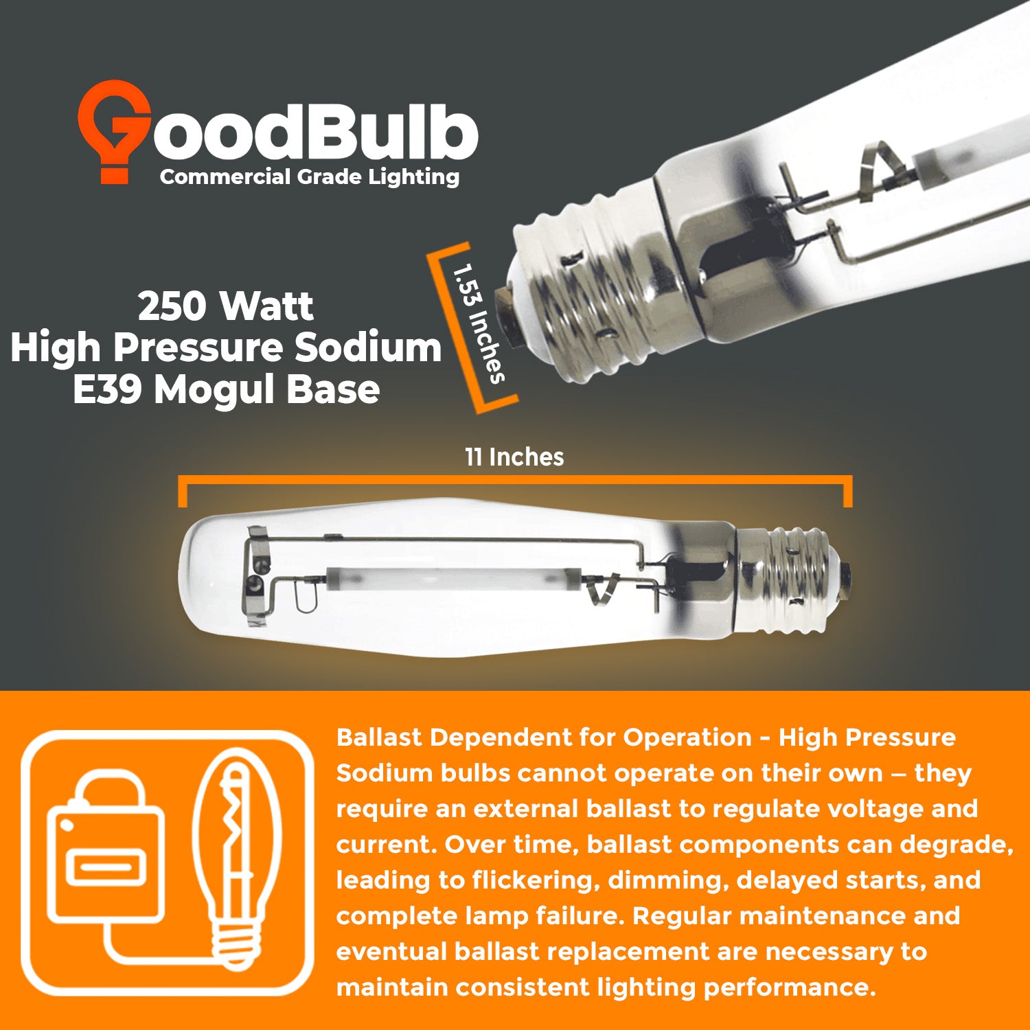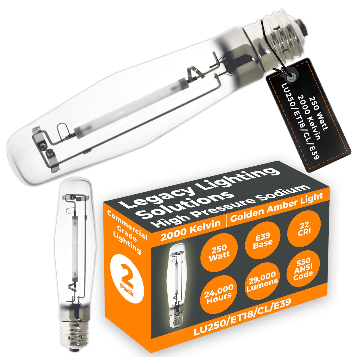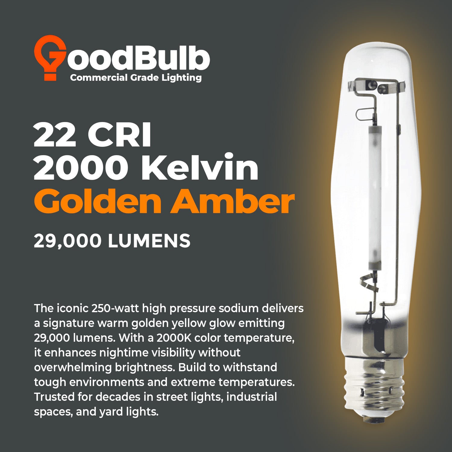 250-Watt High Pressure Sodium HID Light Bulb - E26 Medium Base - Clear - 2000K Warm Yellow Light - 29000 Lumens - 24,000 Hours