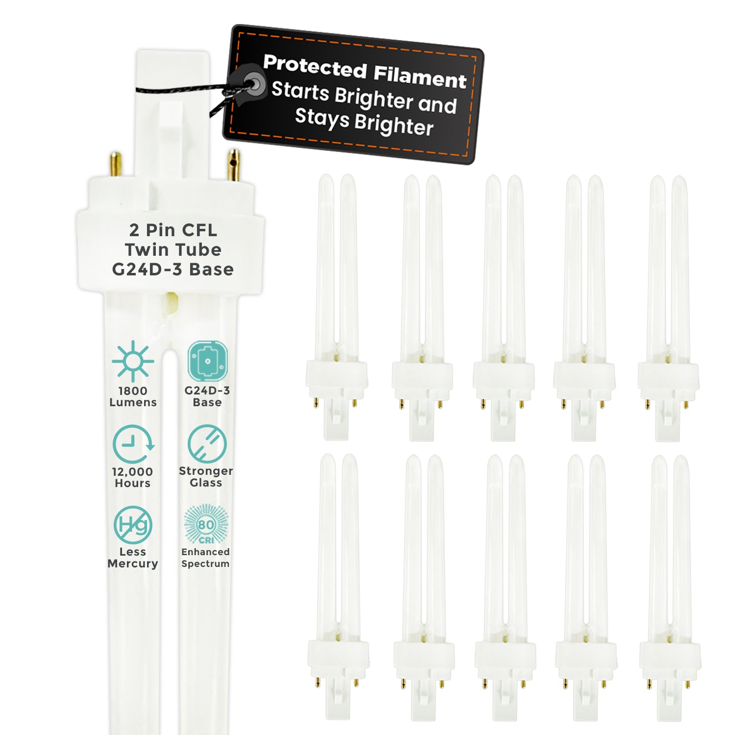 26 Watt CFL Bulbs - 4100K Cool White - 2 Pin G24D-3 - 26W 1800 Lumens - Double Tube Compact Fluorescent Plug-in