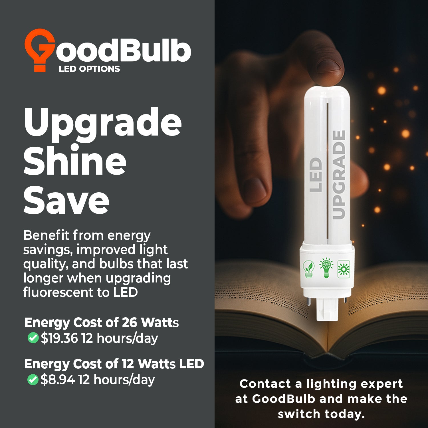 This 26-Watt CFL emits 1,800 lumens at 4100 Kelvin, delivering a clean, cool white glow ideal for task lighting, commercial settings, and workspaces that require clarity without the harshness of daylight tones. With a 2-pin base and double-tube design, this compact fluorescent bulb is commonly used in ceiling fixtures, recessed cans, wall sconces, and utility lighting in offices, schools, medical facilities, and retail spaces.