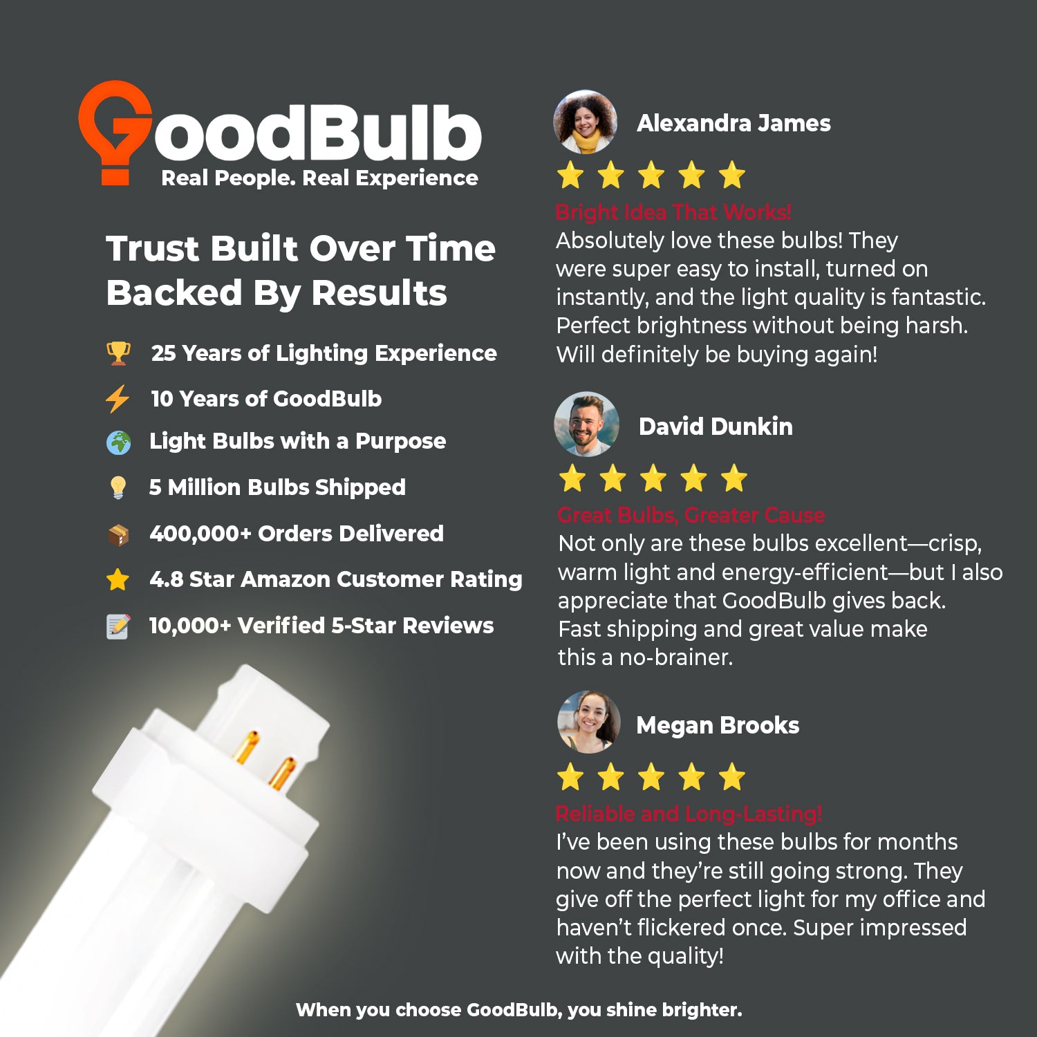 This 26-Watt CFL emits 1,800 lumens at 3500 Kelvin, delivering a neutral white light that balances warmth and brightness—ideal for professional, commercial, and multi-purpose spaces. With a 4-pin base and double-tube design, it’s a perfect fit for recessed lighting, ceiling fixtures, sconces, and wall-mounted luminaires in offices, schools, healthcare facilities, and retail environments.