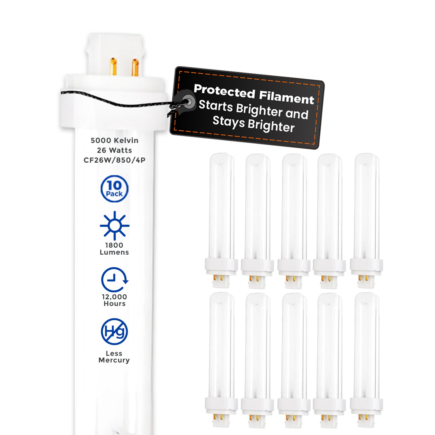 26 Watt CFL Light Bulbs - 5000K Pure White - 4 Pin G24Q-3 - 26W 1800 Lumens - Double Tube Compact Fluorescent Light Bulbs Plug-in