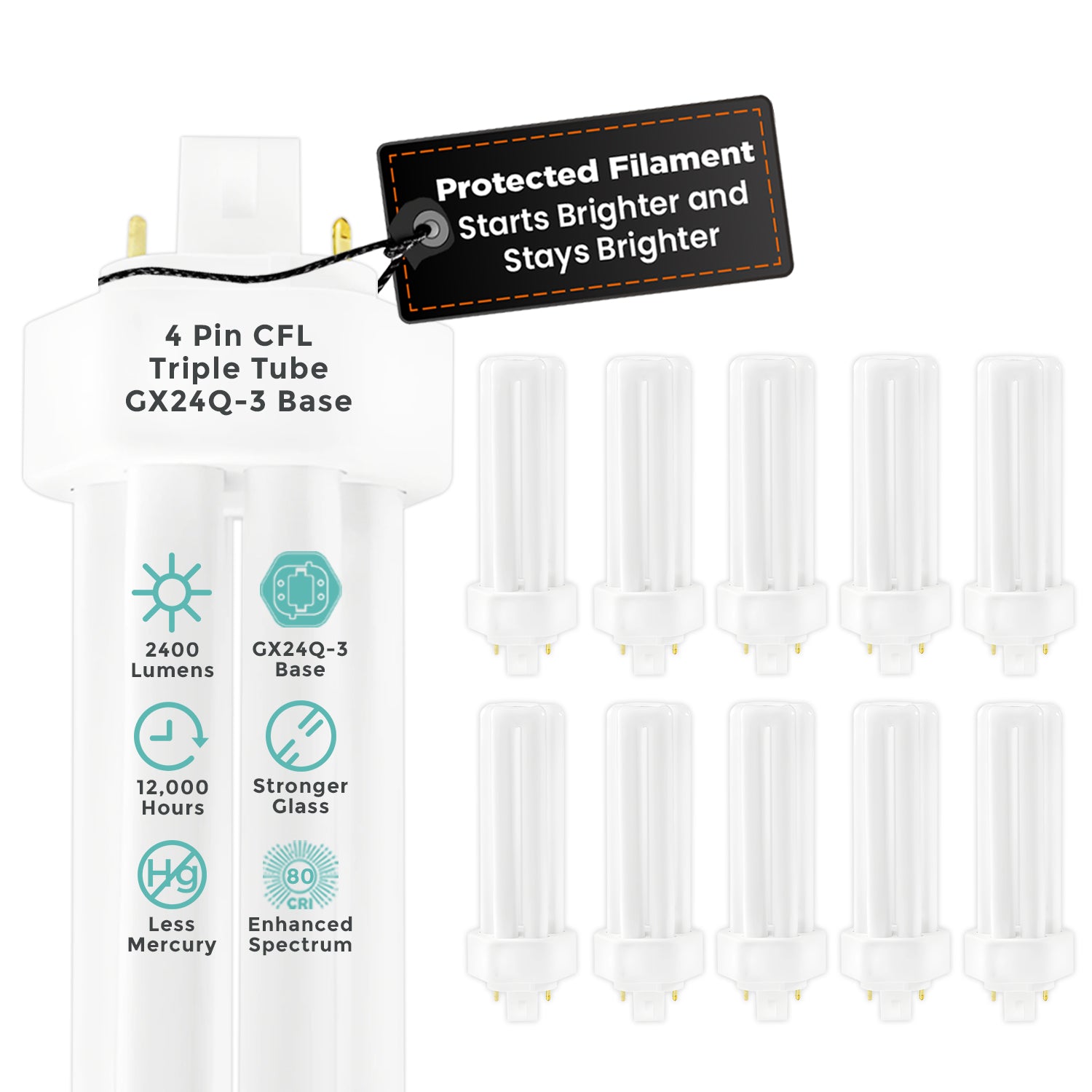 32 Watt CFL Light Bulbs - 4 Pin GX24Q-3 Base - 4100K Cool White -32W 2400 Lumens - Triple Tube Compact Fluorescent Light Bulbs Plug-in