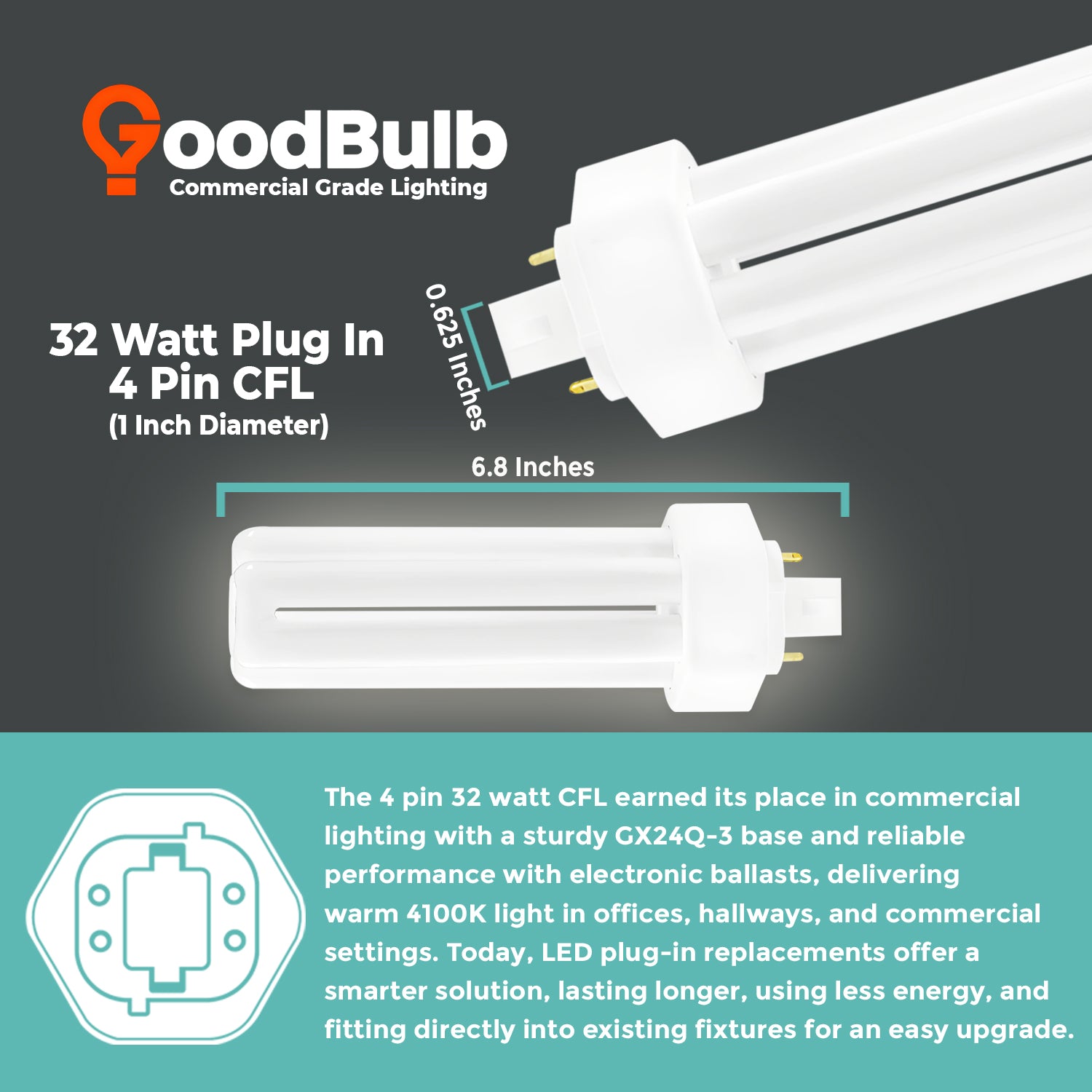 GoodBulb 32W/841 Triple Tube CFL Plug-In Light Bulb: Crisp, Cool Lighting for Professional Spaces