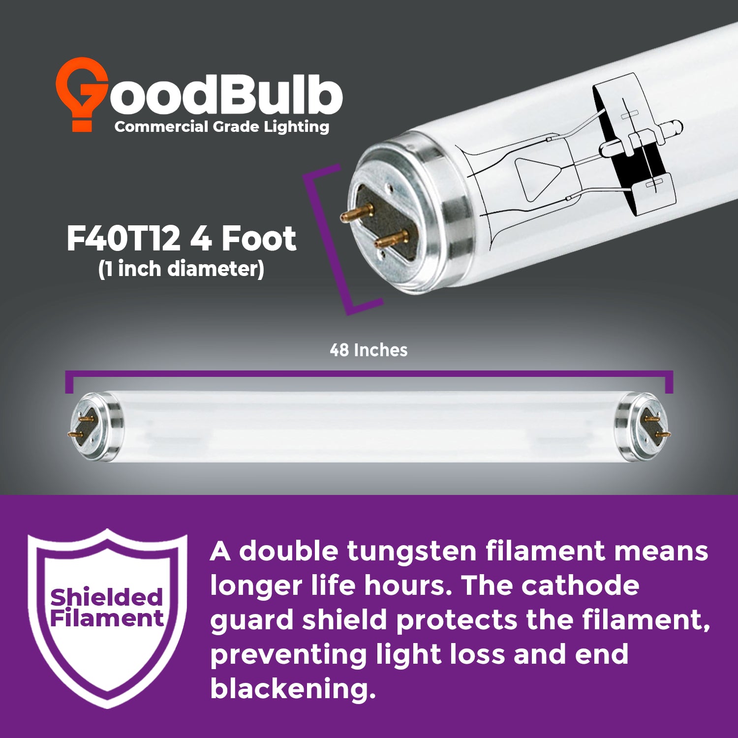 F40T12/965 - 40 Watt 48 Inch T12 Fluorescent Light Bulb - 6500K Full Spectrum - 2600 Lumens - 24,000 Hours