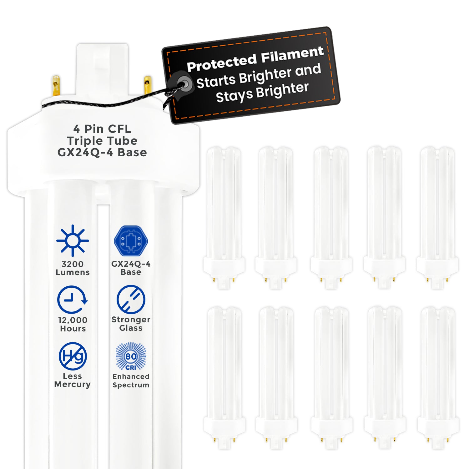42 Watt CFL Light Bulbs - 4 Pin GX24Q-4 Base - 5000K Pure White - 42W 3200 Lumens - Triple Tube Compact Fluorescent Light Bulbs Plug-in
