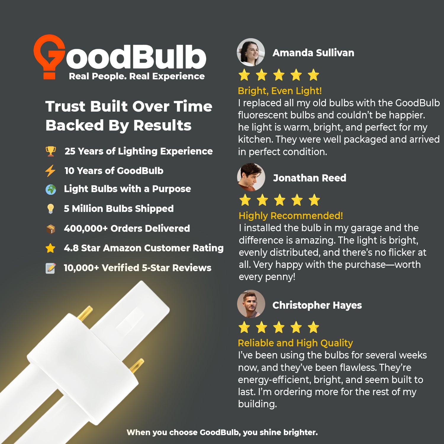 With its G23 2-pin base and single tube design, this plug-in CFL is simple to install and designed for fixtures that require reliable, space-saving light sources. Offering up to 12,000 hours of service life, this bulb reduces maintenance costs while providing consistent, flicker-free illumination.