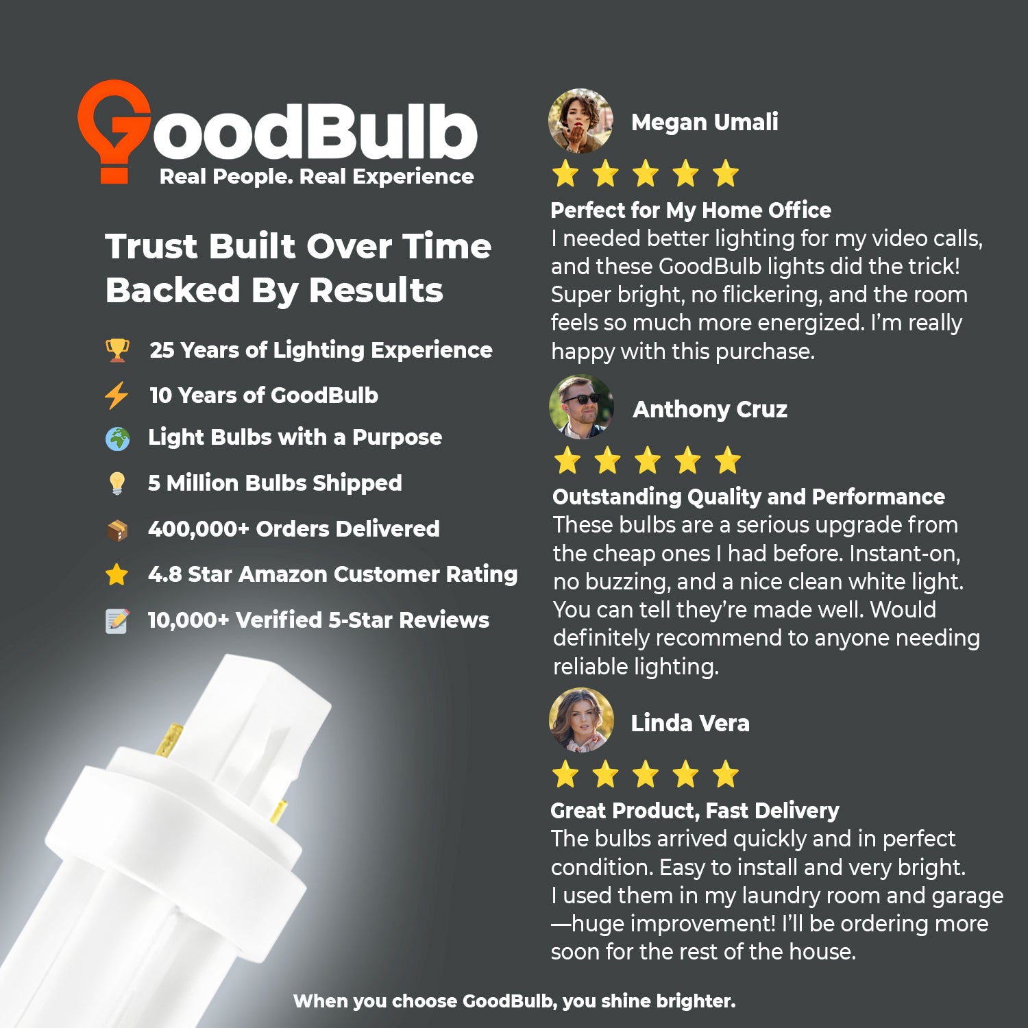 Using just 13 watts of energy, this CFL provides the same level of brightness as much higher wattage incandescent bulbs while consuming a fraction of the power. Outfitted with a 2-pin GX23-2 base, it installs securely and effortlessly into compatible fixtures, making it an easy replacement for older bulbs. Its efficient design...