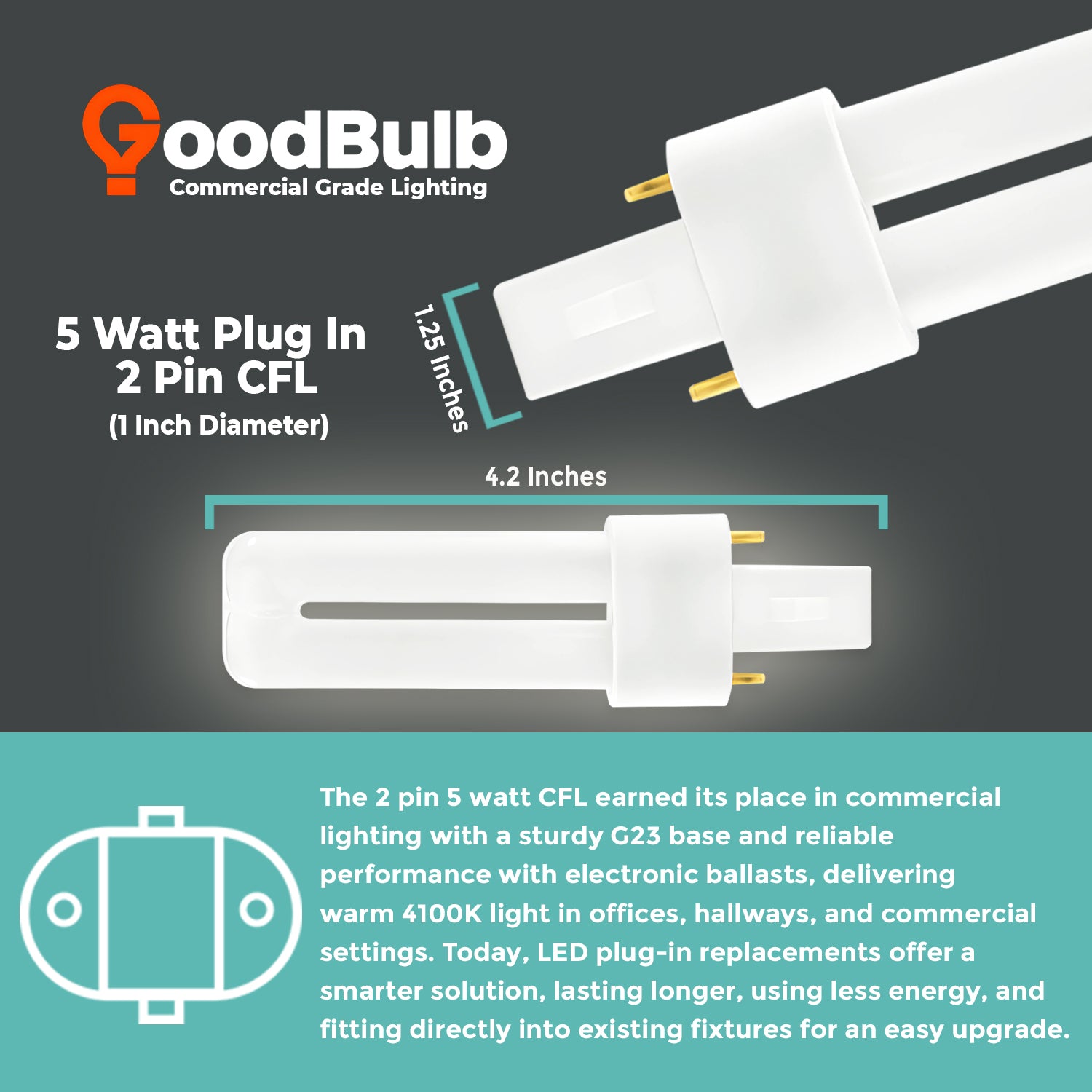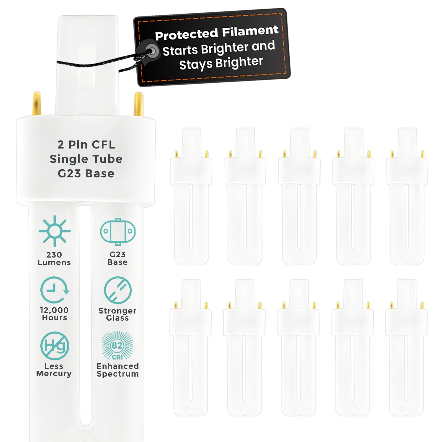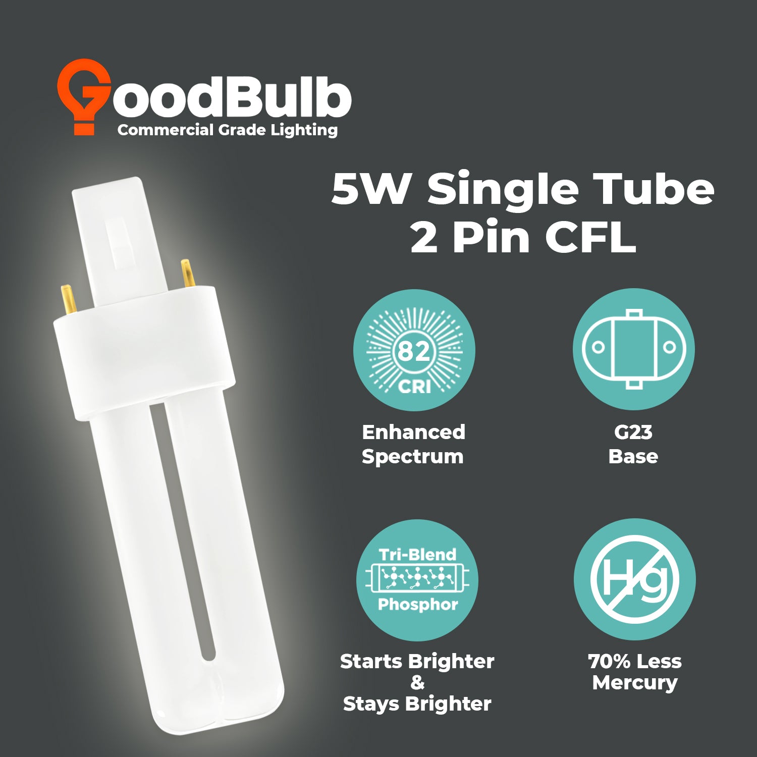 The compact single-tube design and G23 2-pin base make this CFL bulb compatible with a variety of downlights, sconces, task lights, and specialty fixtures, offering a reliable lighting solution with long-term efficiency.