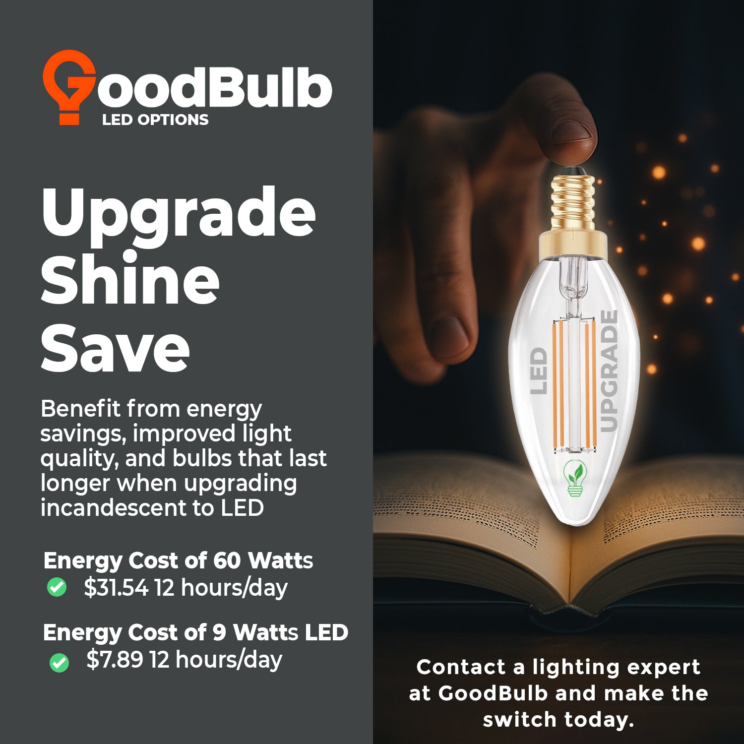 This classic clear bulb offers bright and beautiful lighting, ideal for accentuating the elegance of chandeliers, sconces, and other decorative lighting fixtures in your home or business.