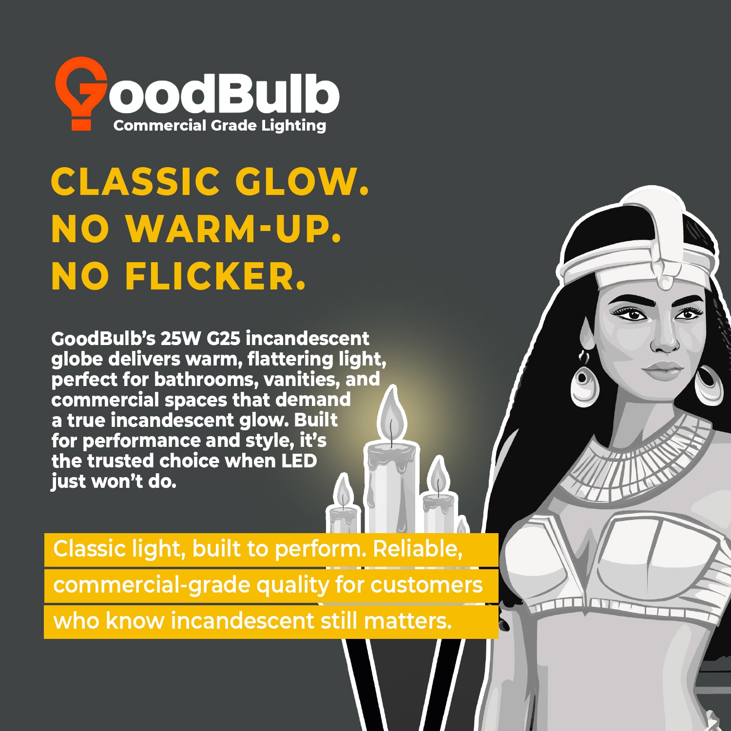 25W G25 Incandescent Vanity Globe Bulb: Classic Glow for Elegant Spaces