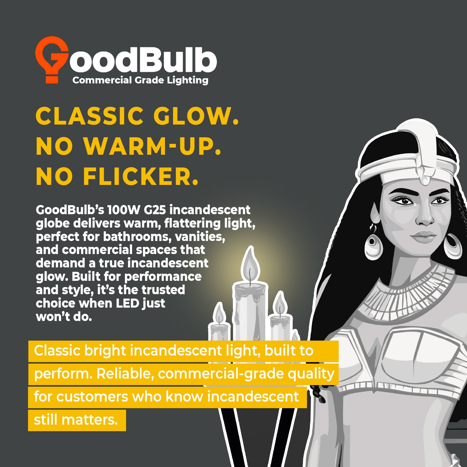 This bulb’s 100-watt output casts a brilliant, evenly diffused glow that enhances skin tones and provides exceptional clarity—ideal for personal grooming spaces and statement lighting in bathrooms, dressing rooms, salons, and makeup areas.