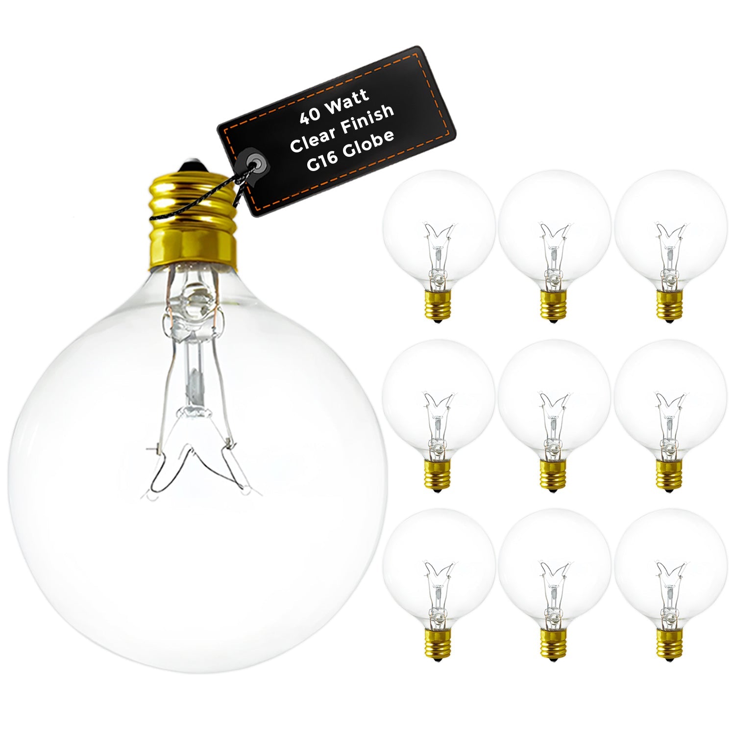 This 40-watt G16.5 incandescent light bulb features a clear glass finish and compact globe shape, delivering a brilliant 550 lumens of warm, inviting light. With a standard E12 brass candelabra base and a rated life of 2,500 hours, it’s the ideal choice for chandeliers, sconces, decorative string lights, and other exposed-bulb fixtures where aesthetics and ambiance matter.