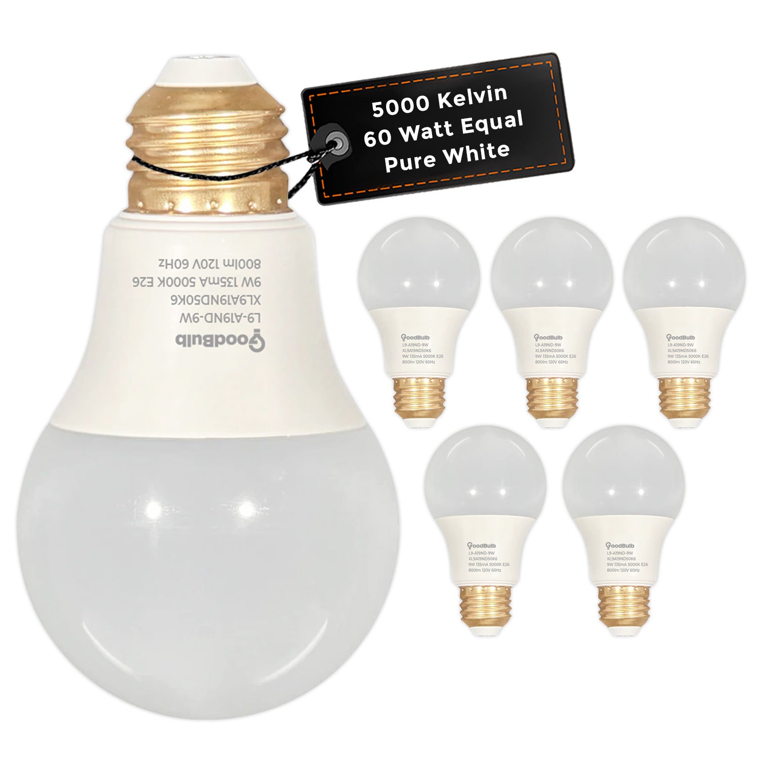 5 WATT ROUGH SERVICE LED A19 – PURE WHITE – 450 LUMENS – 5000 KELVIN – NON DIMMABLE