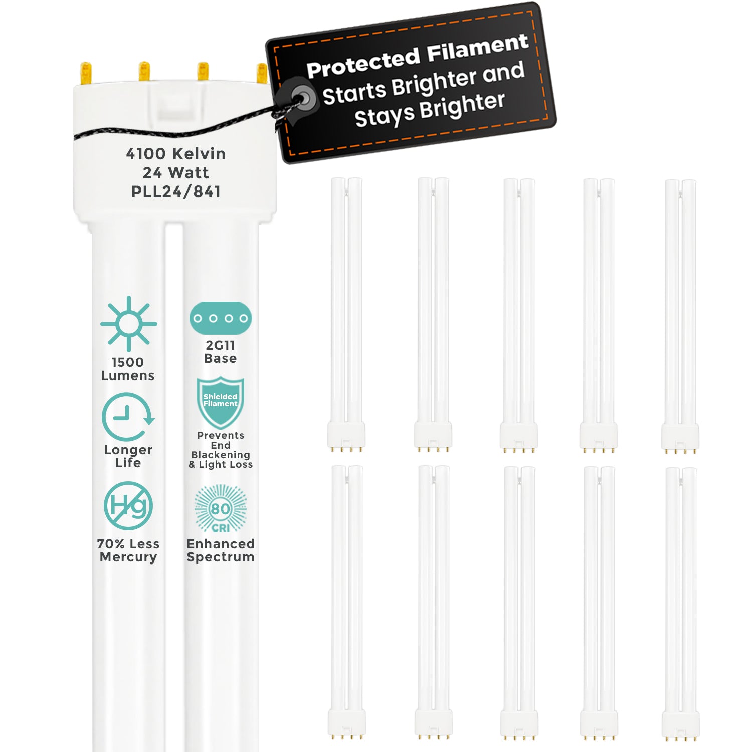 12.7-inch Twin Tube Compact Fluorescent Light Bulb (CFL) with a 4-pin 2G11 base. Emitting 1500 lumens at a 4100 Kelvin Cool White, this lamp delivers a clean, neutral light that enhances visibility and promotes alertness without being too harsh. Itās engineered for extended reliability, offering an impressive 36,000-hour rated life, making it ideal for continuous-use environments such as offices, healthcare facilities, commercial spaces, and institutional settings.