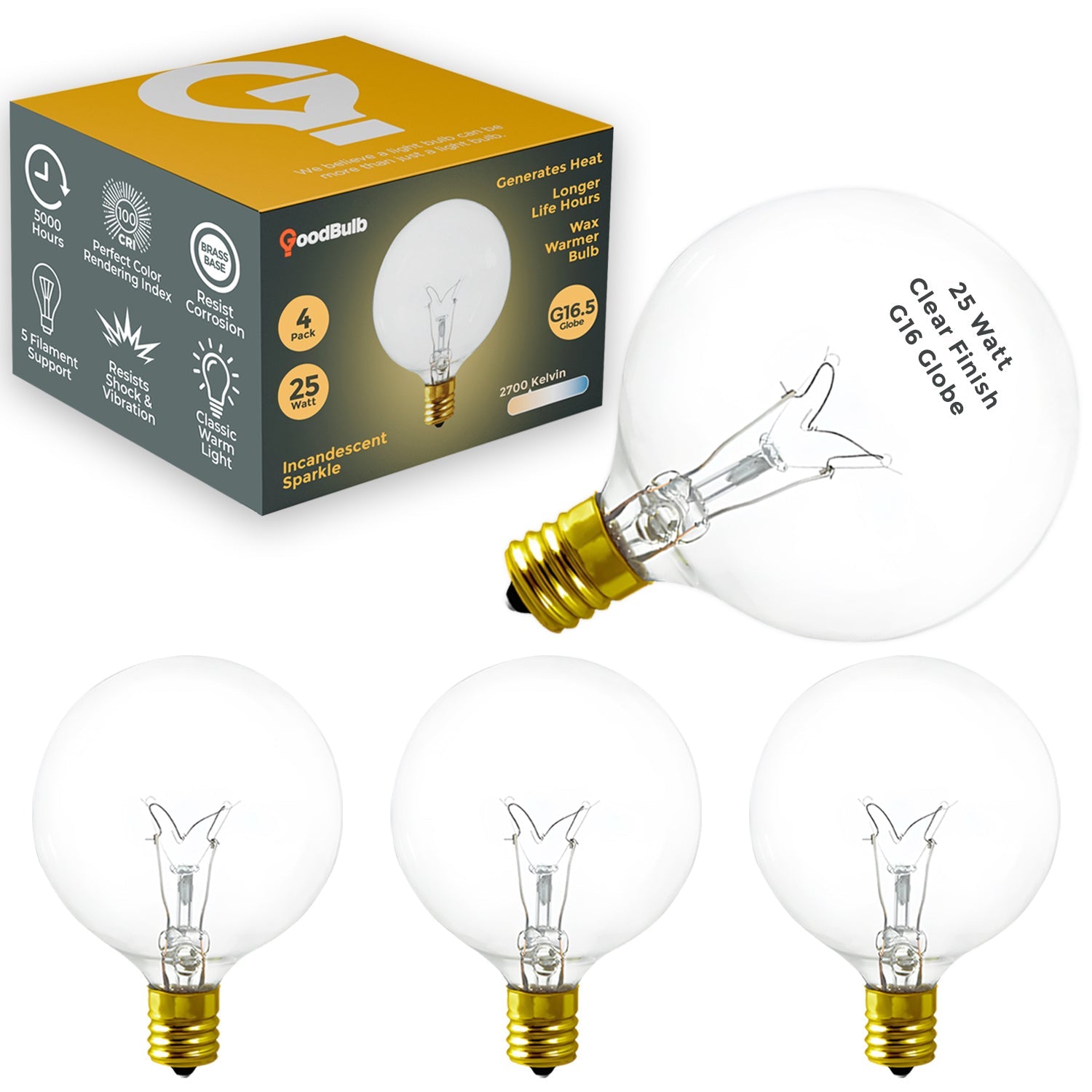 The G16 Wax Warmer & Salt Lamp 25-Watt Dimmable Bulb delivers a soothing 2700 Kelvin Warm White glow designed to elevate comfort, ambiance, and relaxation. Crafted with a crystal-clear finish, this bulb radiates soft incandescent brilliance—perfect for wax warmers, Himalayan salt rock lamps, Scentsy warmers, lava lamps, night lights, and aromatherapy fixtures. Its warm, golden hue creates a calm, inviting atmosphere ideal for bedrooms, spas, living rooms, and cozy nighttime environments.