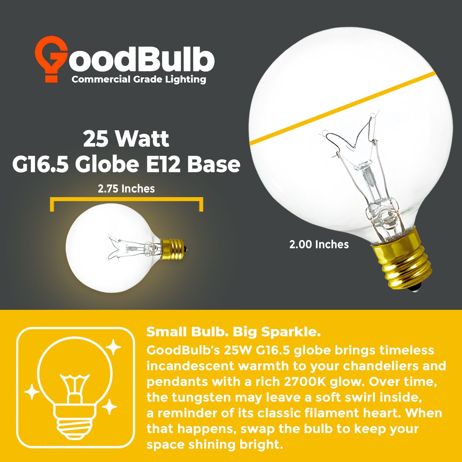 Engineered with dependable clarity and performance, the G16 globe bulb consumes 25 watts of power while providing 175 lumens of gentle, evenly dispersed illumination. The rugged E12 Candelabra Brass Screw Base ensures exceptional conductivity, heat resistance, and long-term durability. Rated for 130-volt applications and built...