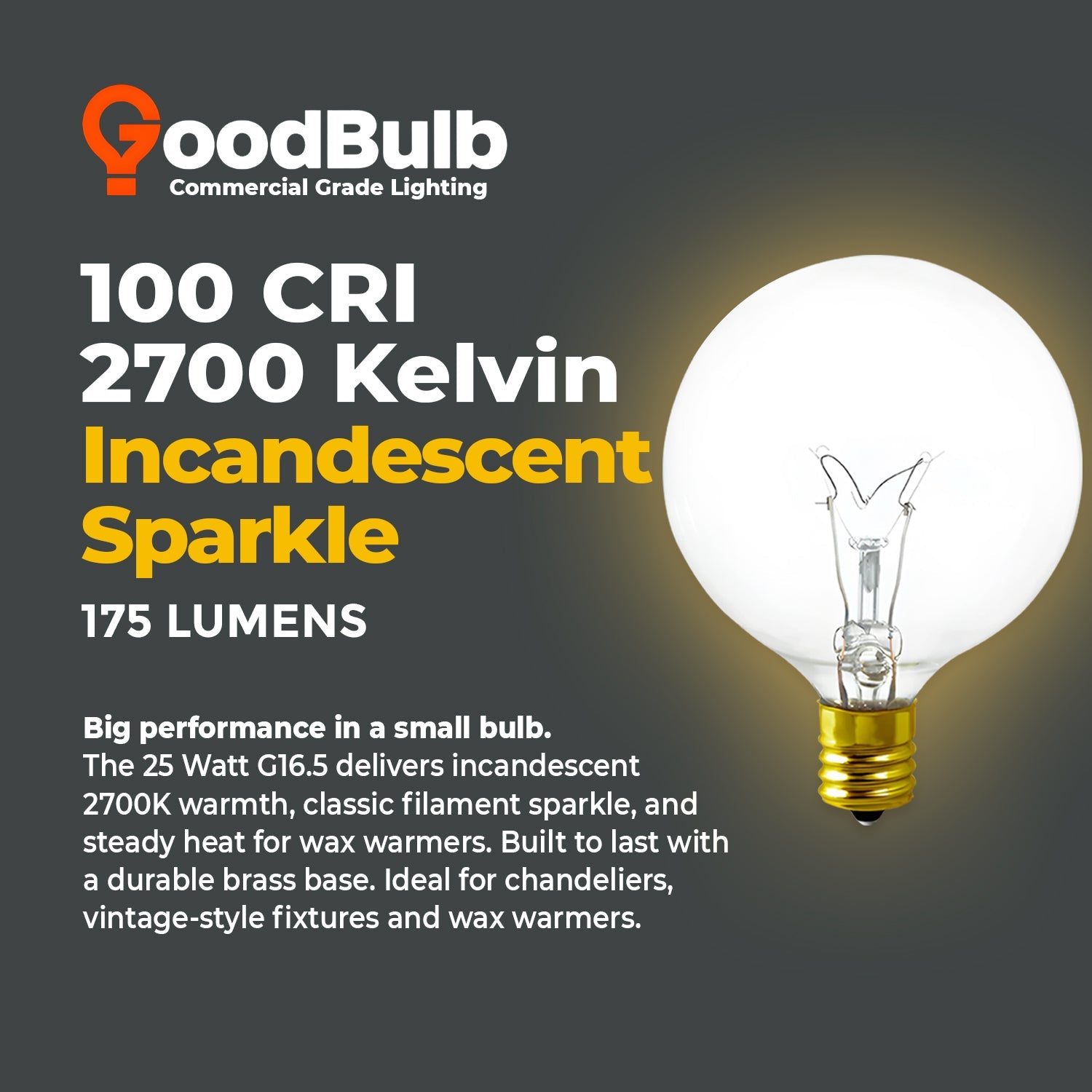 Wax Warmer & Salt Lamp G16 25W E12 Warm White Glow – Dimmable Candelabra Bulb with Brass Base for Night Lights, Scentsy Warmers, Lava Lamps & Aromatherapy Fixtures